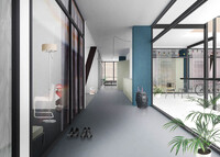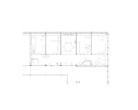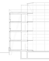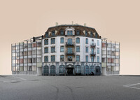Die architektonische Fortsetzung des Fragments schlägt eine weitere Neuinterpretation des Eber-Gebäudes und einen weiteren Massstabswechsel vor. Der schlanke, leichte Anbau fügt sich natürlich an die Brandmauern des bestehenden Gebäudes und bildet ein intimes Atrium. Er ergänzt es durch subtile Annäherung und Kontrast, weist eine verwendte Strukturierung und einen ähnlichen Rhythmus wie die Fassade auf und bleibt in Bezug auf Typologie und Organisation seinem radikale eigenständigen Charakter treu. Das steinerne Eber-Haus erhält so ein neues Selbstverständnis als Fragment, und seine Geschichte wird durch eine einfach konstruierte, ephemere Architektur fortgesetzt. Das Ganze wird zu einer Stadtvilla, einem freistehenden Wohngebäude für viele Parteien. Zwischen architektonischer Komplexität und klarer Raumaufteilung entsteht ein ausreichender, hochwertiger Wohnraum.