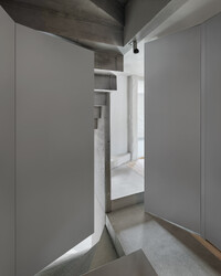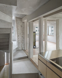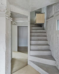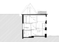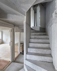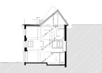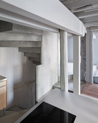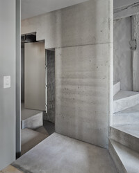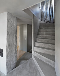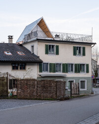 Der Flarz ist ein für das Zürcher Oberland typischer vernakulärer Bautyp. Die dicht aneinander gereihten Nutzungseinheiten entstanden aus dem Bedürfnis nach Wohnraum auf landwirtschaftlich geprägten Grundstücken. Das Haus an der Bachgasse wurde im Laufe der Jahrzehnte mehrmals umgebaut. Um auf die prekäre Raumhöhe von 2.05 m zu reagieren, wurde mit dem Wiederaufbau der maroden rückwärtigen Raumkammern die Erschliessung des Hauses neu interpretiert. Anstelle einer kompakten Treppe und eines kleinen Nebenraumes breitet sich die neue vertikale Erschliessung als topografische Landschaft aus und verwischt die Grenzen zwischen Bewegung und Nutzung. Ungeahnt grosszügige Raumbeziehungen und Querblicke sowie eine fliessende Bewegung vom Eingang bis zum Dach werden möglich. Die Aktivierung aller Stufen als strukturelle Unterzüge basiert auf der konstruktiven Auseinandersetzung mit der komplexen Geometrie. Die Ausführung in Spritzbeton ermöglicht eine ressourcen- und platzsparende Realisierung mit nur 55 mm Deckenstärke.