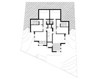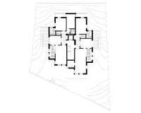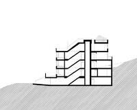 Das Haus am Hang versucht bekannte Elemente der bürgerlichen Stadtvilla auf zeitgemäss Art zu interpretieren. Die Räume werden nutzungsoffen, vielfältig schaltbar und für eine Vielzahl von Lebensformen aneigenbar. Die einfache und systematische Raumstruktur verdichtet sich zum Zentrum hin und vermag die orthogonal zum Hang liegenden Räume selbstverständlich zu gliedern. Vielfältige Durchblicke und Wege schaffen Grosszügigkeit im dicht organisierten Lebensraum. Die volumetrische Staffelung des Hauses am Hang lässt der unterhalb der Parzelle liegenden Strasse viel Raum und schafft auf selbstverständliche Weise Aussenräume auf unterschiedlichen Plateaus. So orientieren sich die Wohnungen, trotz gleichbleibender Grundstruktur, auf den verschiedenen Geschossen erst zur Seite und dann nach unten. Das letzte Geschoss dreht die innere Struktur um 90 Grad und vermag dem Haus dank angepassten Raumhöhen einen starken oberen Abschluss zu geben.