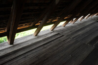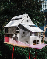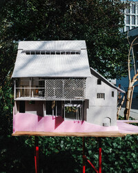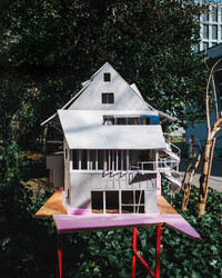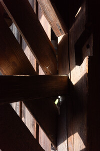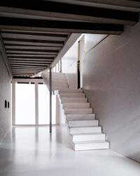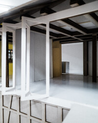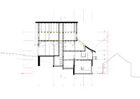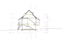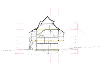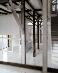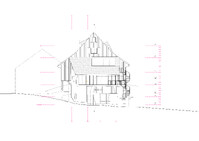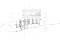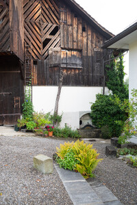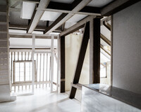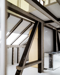 Der Projektvorschlag für die Umnutzung der Scheune konzentriert die Eingriffstiefe konsequent auf die den Punkt mit dem wenigsten Bestand. Indem diejenige Decke mit den grössten Strukturschäden auf einer neuen Höhe wiedereingebaut wird, werden neue räumliche Verbindungen vom Hauptraum zum historischen Anbau möglich. Der Sockel wird der Haus- und Arealgemeinschaft zur Verfügung gestellt und als ungeheizte Empfangshalle interpretiert. Eine neue, querliegende Kaskadentreppe erschliesst alle drei individuellen Wohnungen zentral und macht die beiden seitlichen Lauben als gemeinsamer Erschliessungsraum resp. als Balkonschicht und Filter zur Strasse zugänglich. Während die beiden grossen Maisonetten um die expressive, historische Struktur organisiert sind und diese zu räumlichen Akteuren überhöhen, orientiert sich die dritte, im Anbau liegende Wohnung zum See und zum Garten. Das Verhältnis von Bestand, langfristiger Ertüchtigung und mittel- oder kurzfristigen Einbauten und Installationen werden raumprägend.
