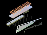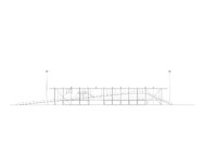 Die Tribüne versteht sich als Infrastrukturbau, dessen Grundfunktionen Tragen, Trennen und Dämmen isoliert, von spezialisierten Objekten erfüllt werden. Eine markante Dachstruktur aus wiederverwendeten Betonstützen und Stahlträgern bildet das strukturelle und formale Rückgrat des Projektes. Darunter definieren eine breite Rampe von Norden und eine Treppe von Süden den Bereich der elf Sitzstufen. Damit jede Sitzstufe und jeder der 624 Sitzplätze direkt erschlossen ist, verschneiden sich diese seitlich mit den diagonal verlaufenden Wegen. Die überraschende Geometrie resultiert aus der Auseinandersetzung mit hindernissfreier Erschliessung und den dazugehörigen Normen.